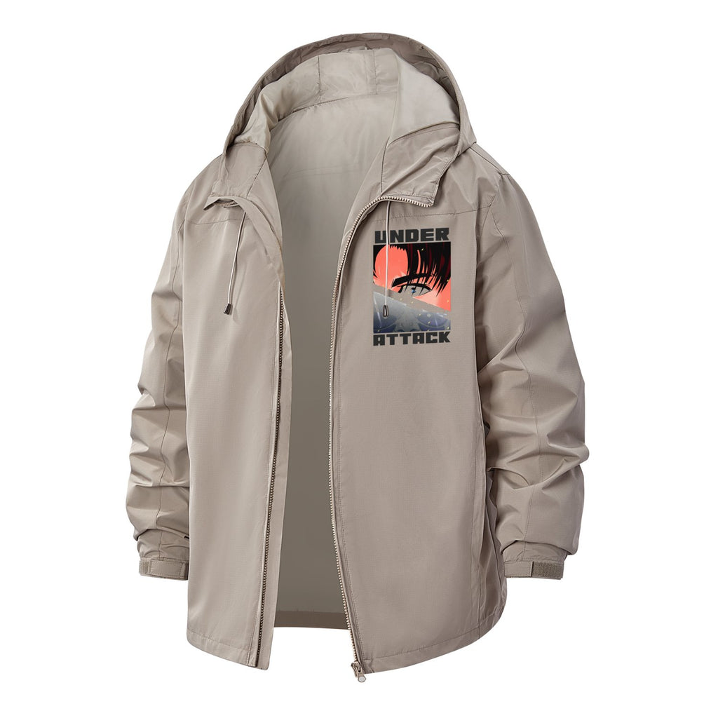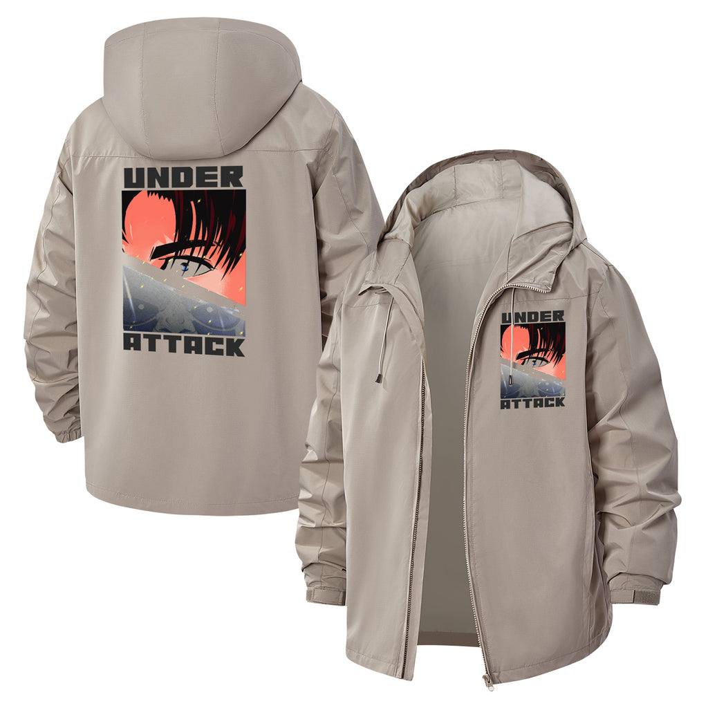 Under Attack Anime-Inspired Unisex Full-Zip Printed Waterproof Hooded Windbreaker