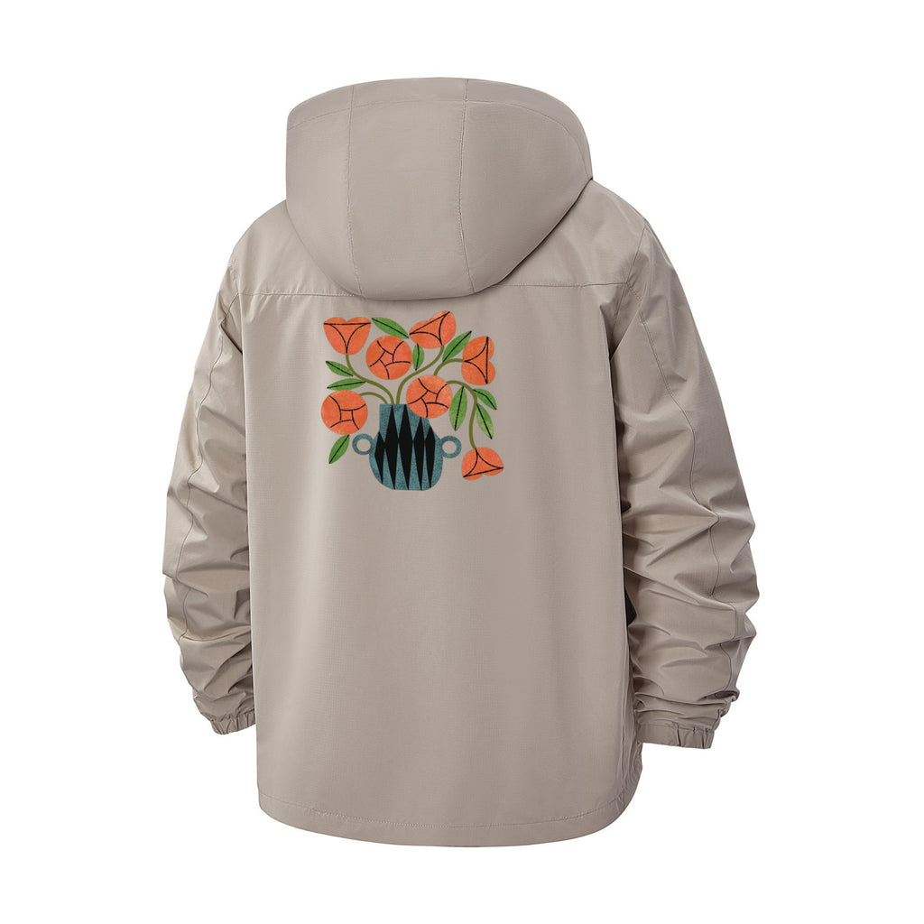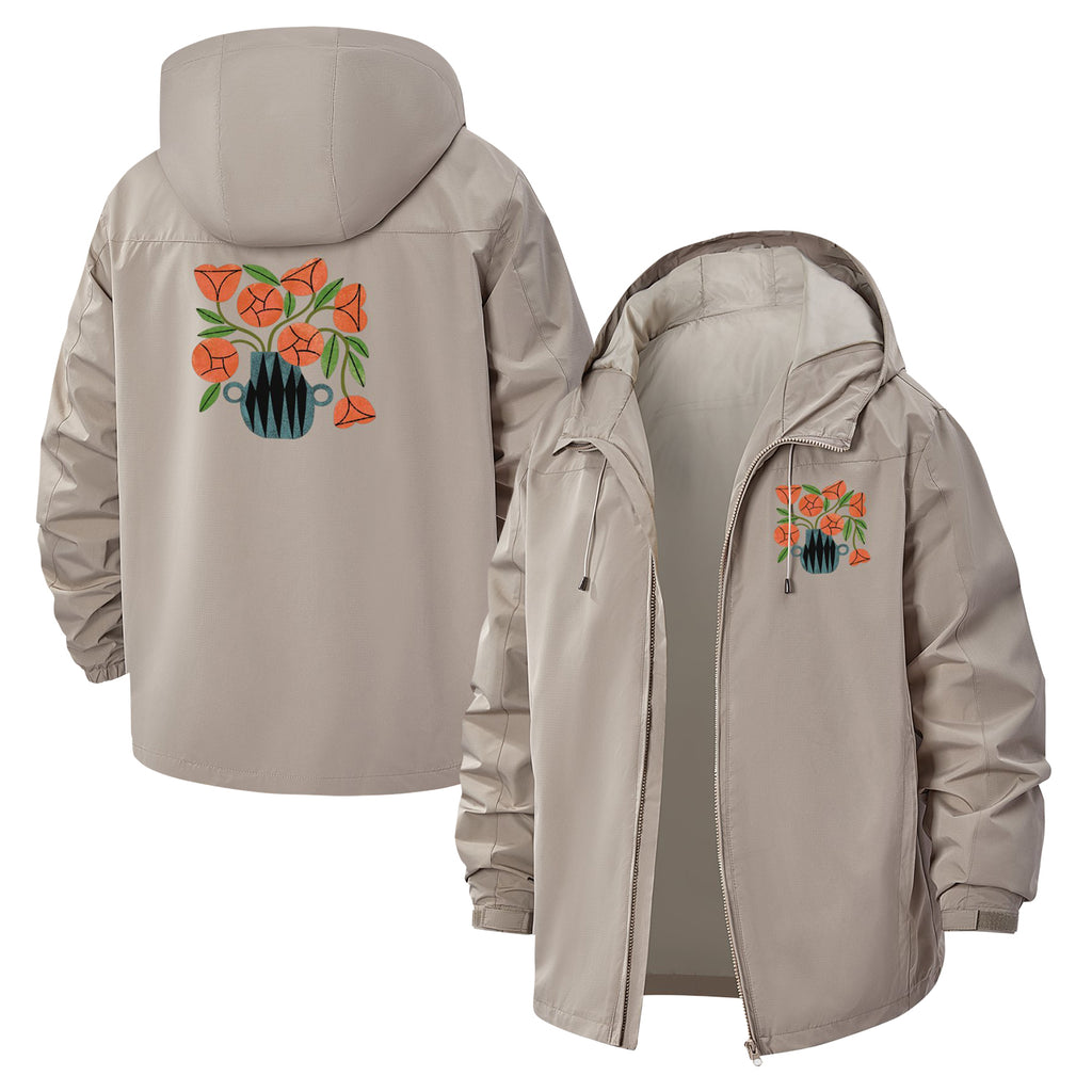 Vase Floral Arrangement Unisex Full-Zip Printed Waterproof Hooded Windbreaker