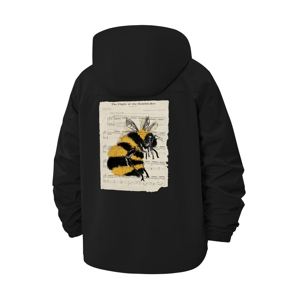 Vintage Bumblebee Illustration Unisex Full-Zip Printed Waterproof Hooded Windbreaker