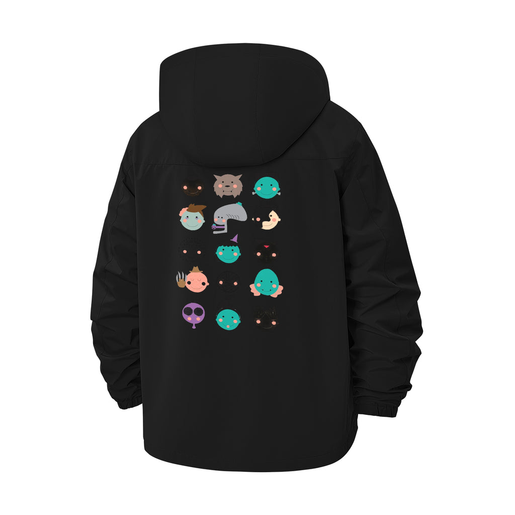 Whimsical Animal Faces Unisex Full-Zip Printed Waterproof Hooded Windbreaker