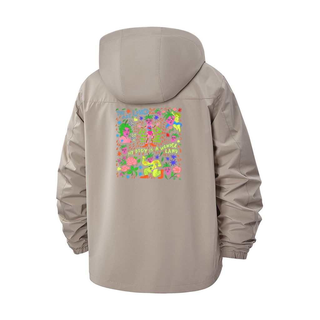 Whimsical Cartoon Fantasy Unisex Full-Zip Printed Waterproof Hooded Windbreaker