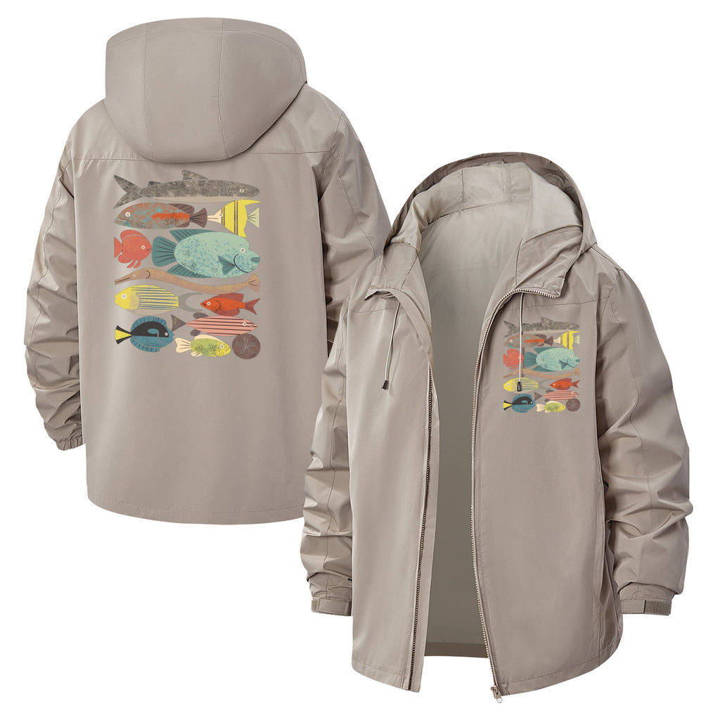 Whimsical Fish Unisex Full-Zip Printed Waterproof Hooded Windbreaker