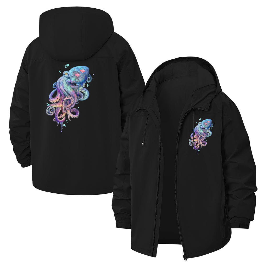 Whimsical Octopus Unisex Full-Zip Printed Waterproof Hooded Windbreaker
