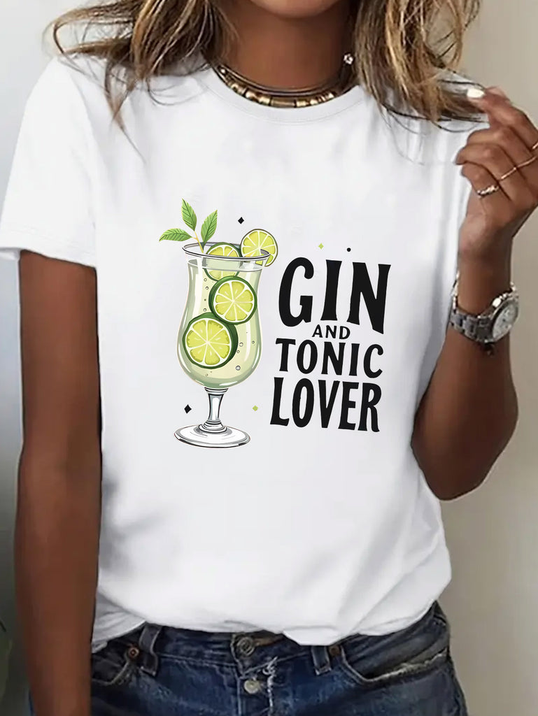 Womens Graphic Tees Vintage Gin And Tonic Lover Refreshing Citrus With Lime Slices In Glass, 100 Cotton T Shirts For Women, Womens Night Shirts