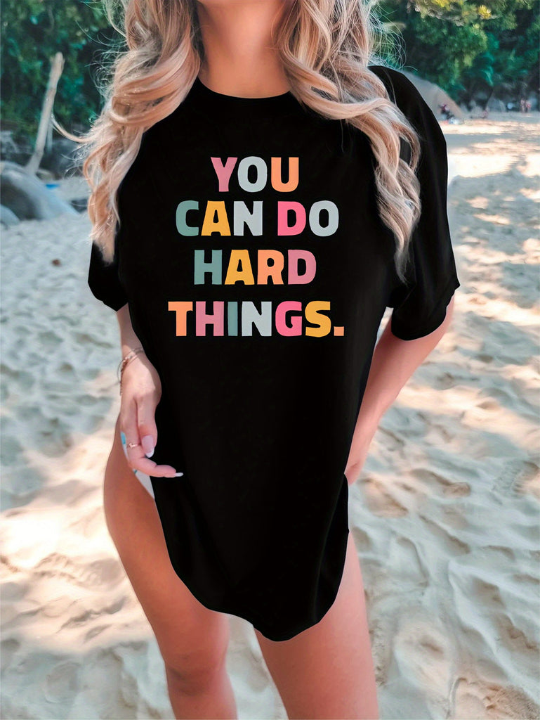 Womens Shirts You Can Do Hard Things Colorful Motivational Text On Black Short Sleeve T Shirt, Funny Shirts For Women, Womens T Shirts