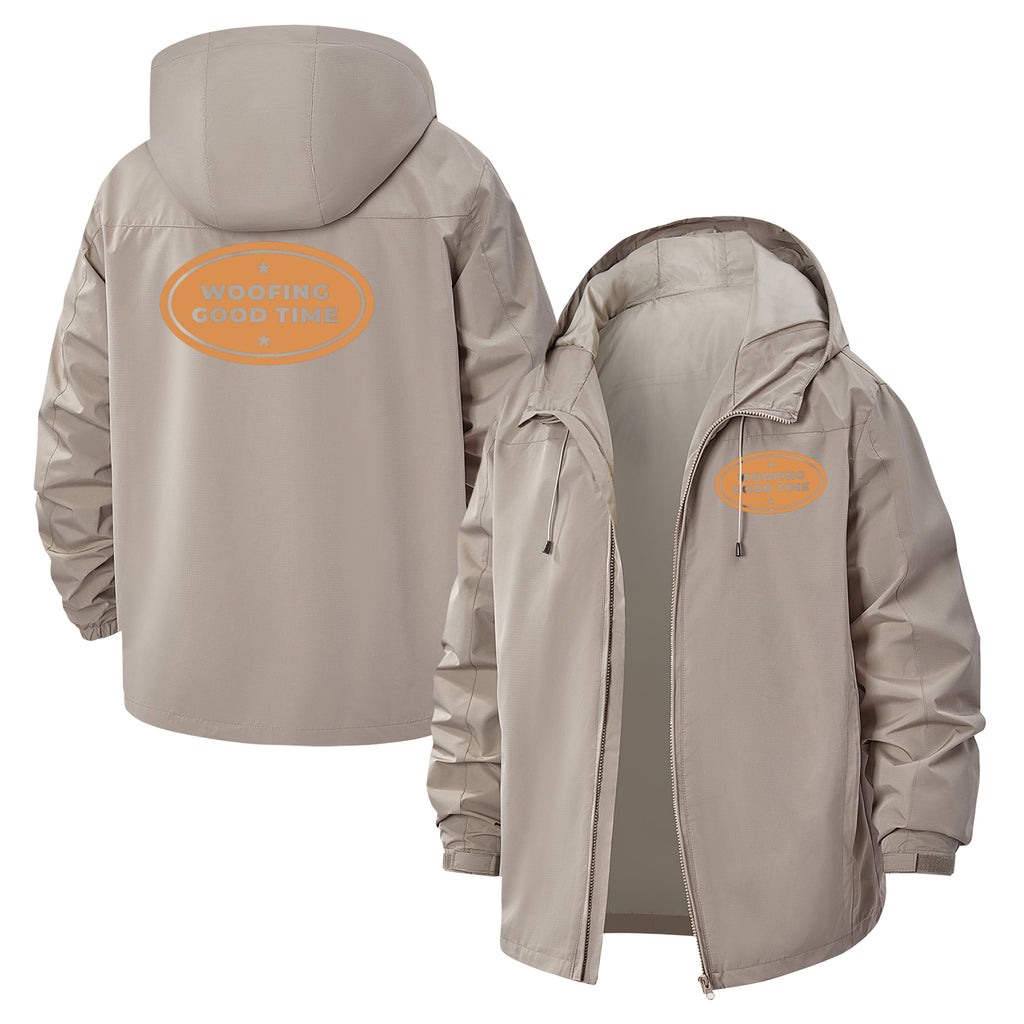 Woofing Good Time Unisex Full-Zip Printed Waterproof Hooded Windbreaker